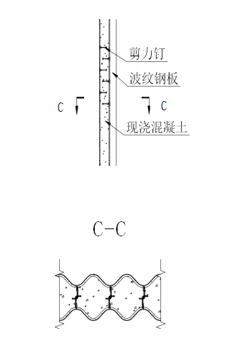 ③裝配式箱型鋼結構涵洞及通道結構中,內部的豎墻是兩層豎直的波紋鋼板, 中間填充澆注了混凝土,波紋鋼板上設有鋼筋或剪力釘,此結構中,波紋鋼板既是中間混凝土的澆注模板,又是結構體本身,并與混凝土結構形成了鋼與混凝土組合式結構,力學性能呈倍數增加,可使該處波紋鋼板的厚度減少一半左右。所以,內部豎墻應用了鋼與混凝土組合結構原理,是裝配式箱型鋼結構涵洞及通道造價節省的第三個因素。
