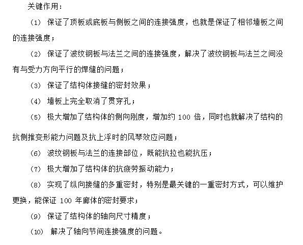 1、材料:墻板采用波紋鋼板作為主體,以縱向法蘭、周向法蘭及其他結構件以附件,焊接后組合成標準的鋼結構地下墻板構件。材質是 Q345 鋼板或 Q420 鋼板,裝配用的螺栓采用埋地專用耐腐蝕碳素結構鋼螺栓,或者采用不銹鋼螺栓。