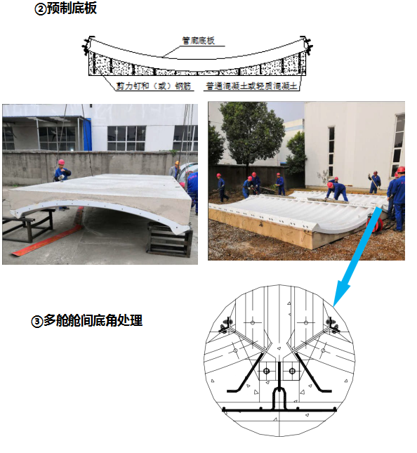 (1)吊裝預制底板至設計位置;